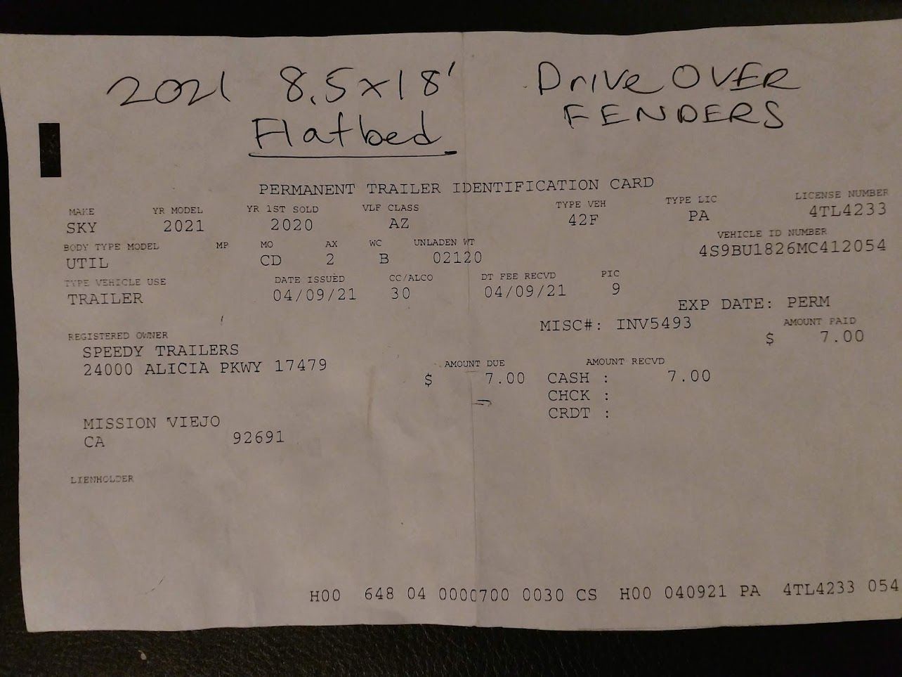 Flatbed Trailer 14x7x6.5 Enc. 7k